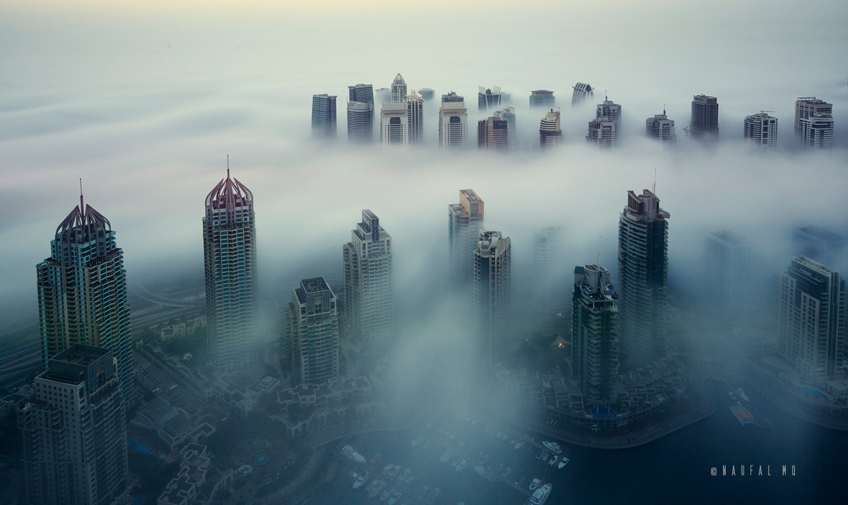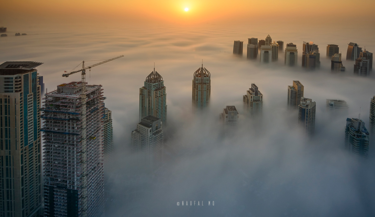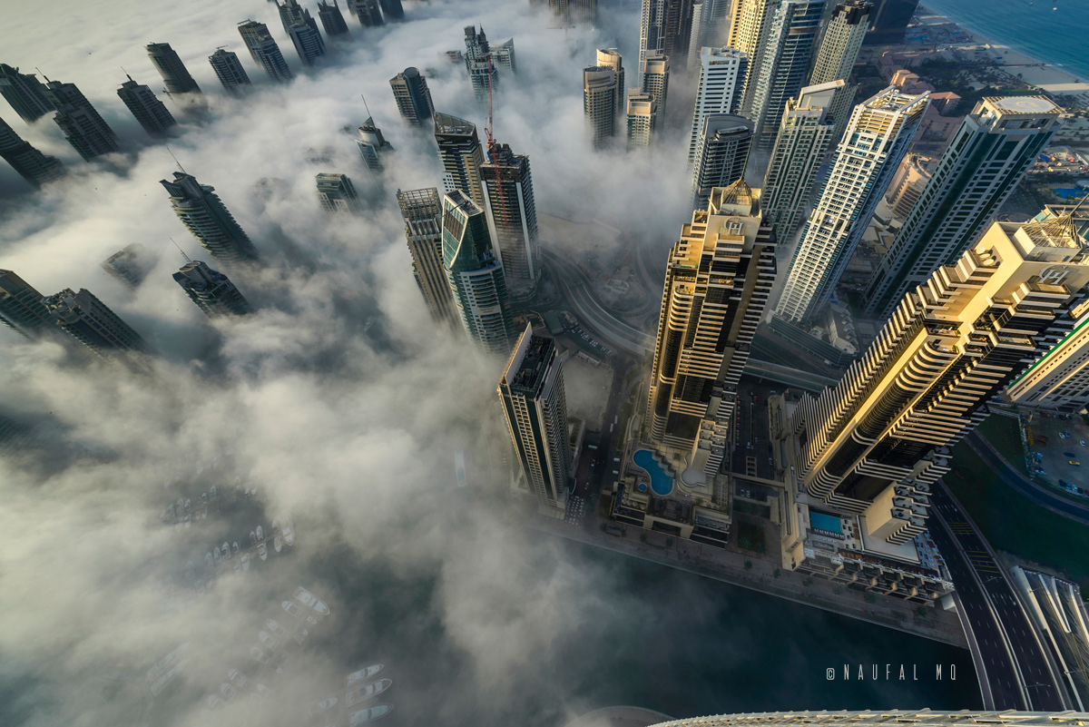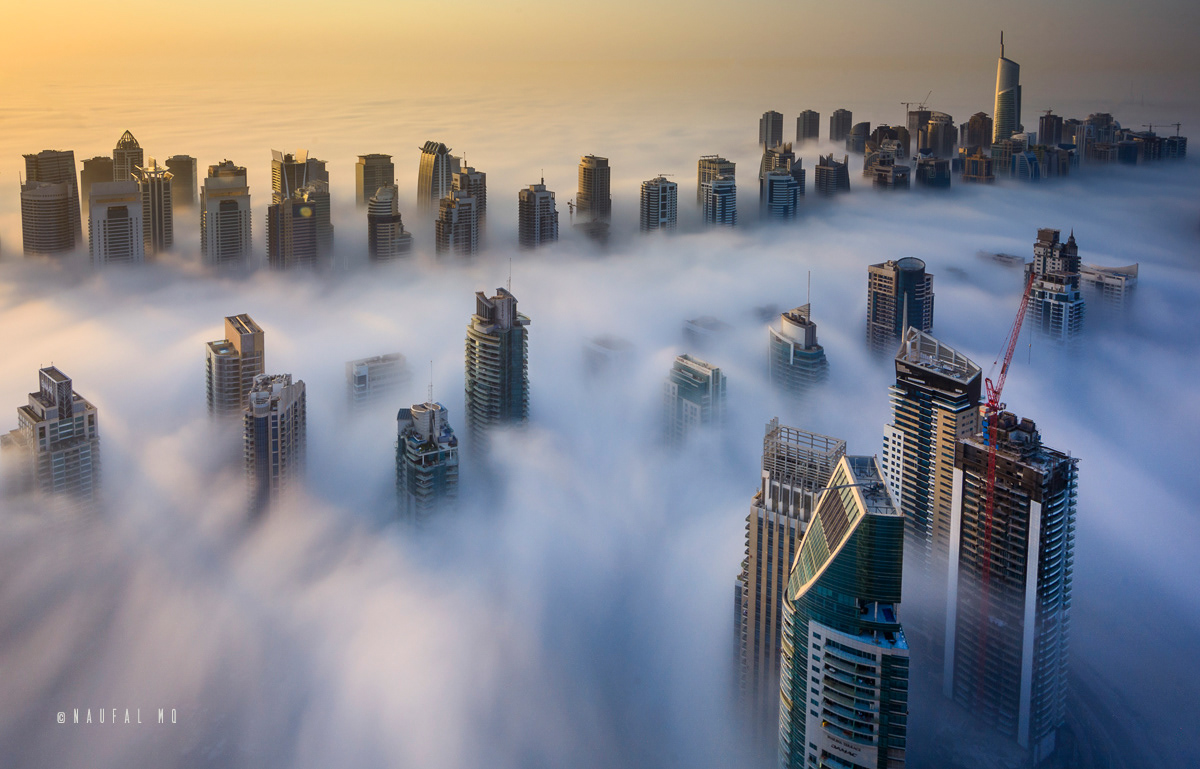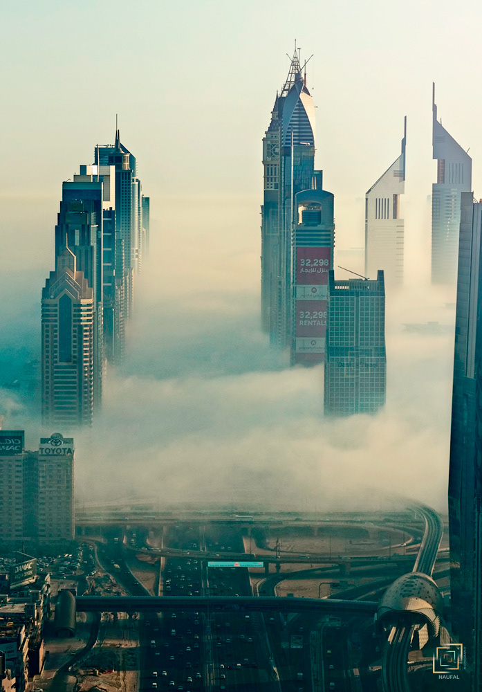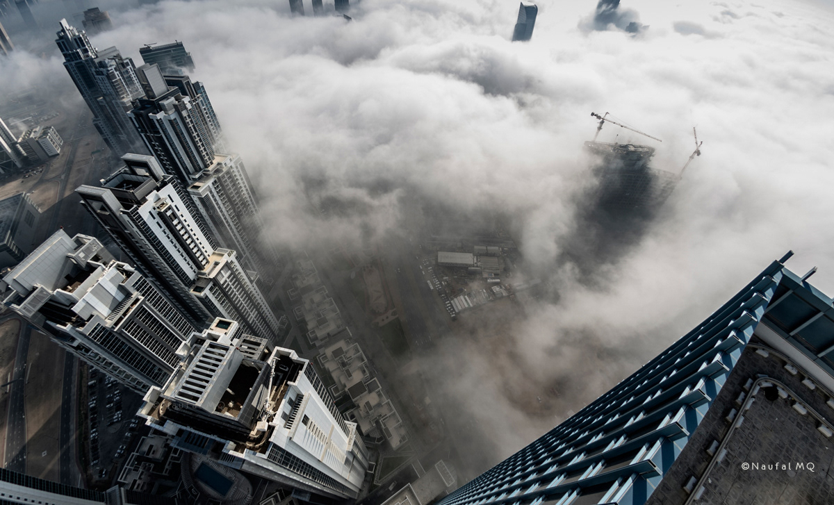 When Dubai is enveloped by the fog, no better place than rooftops of skyscrapers to witness the stunning view.