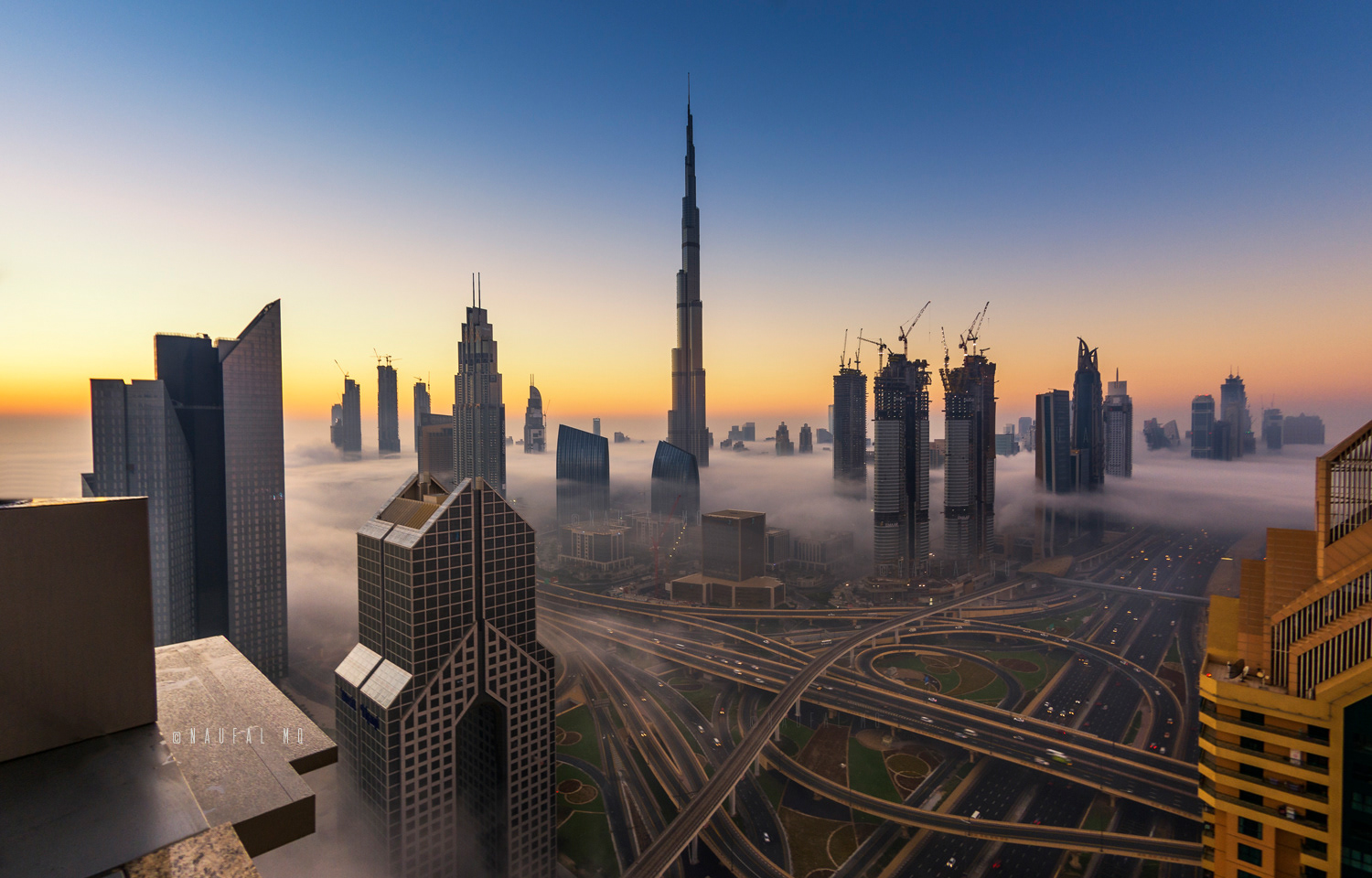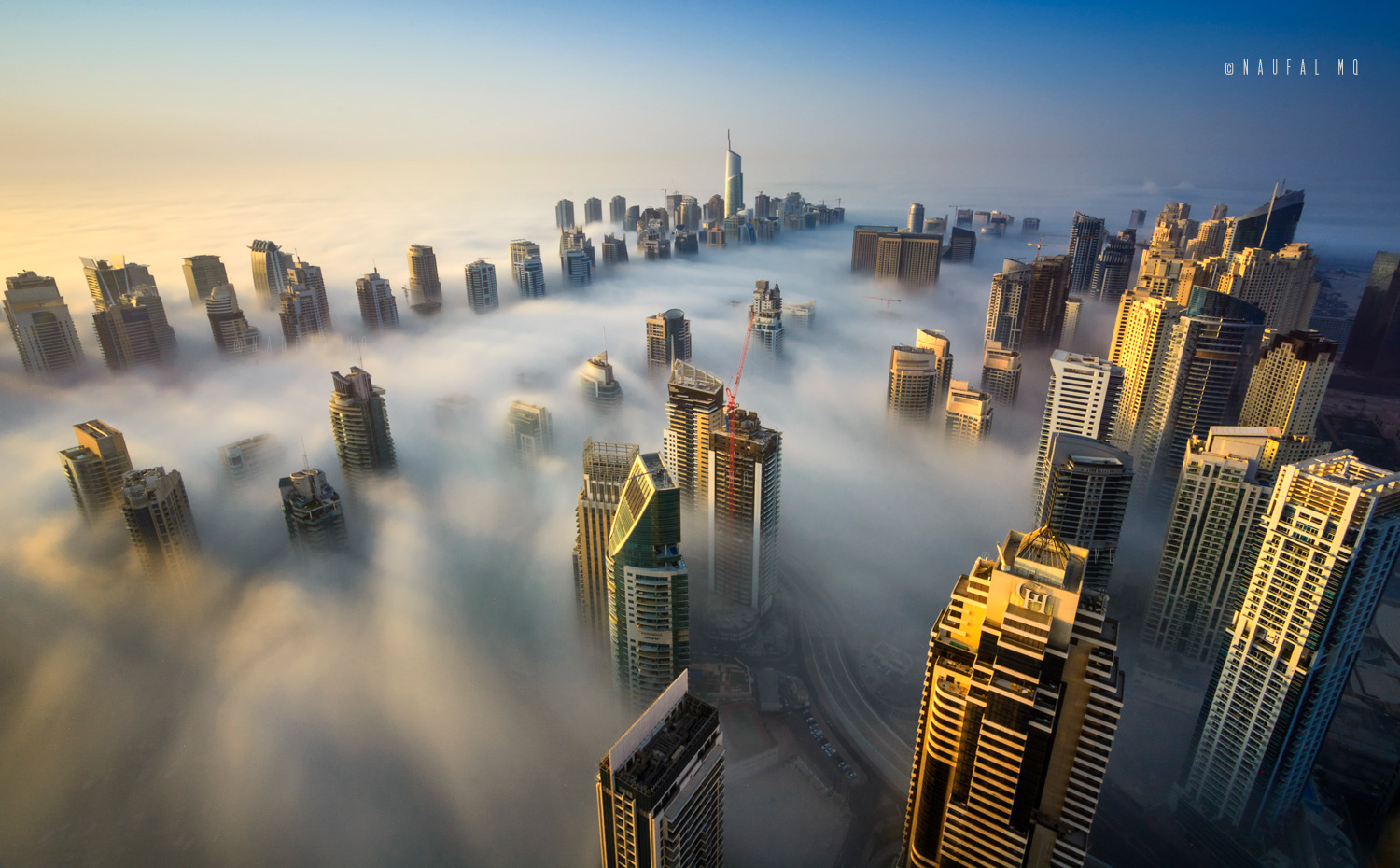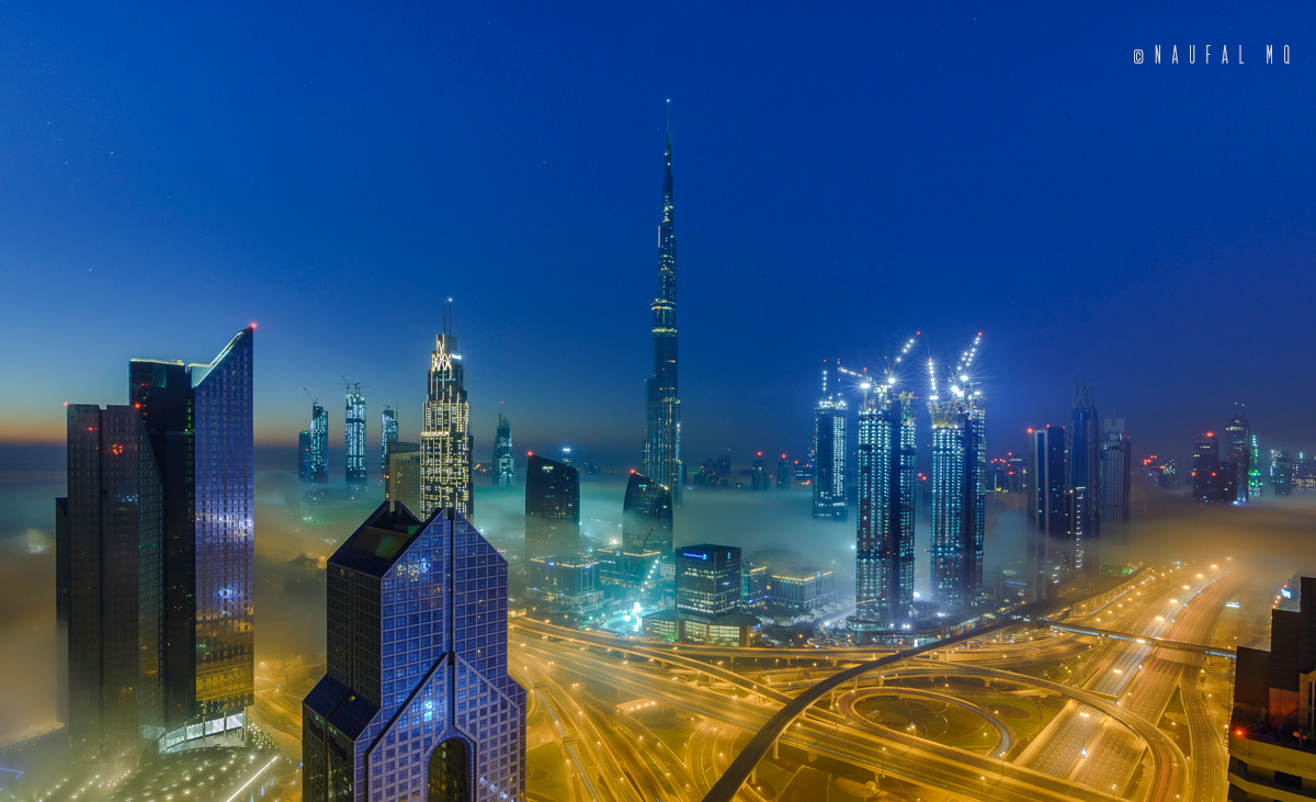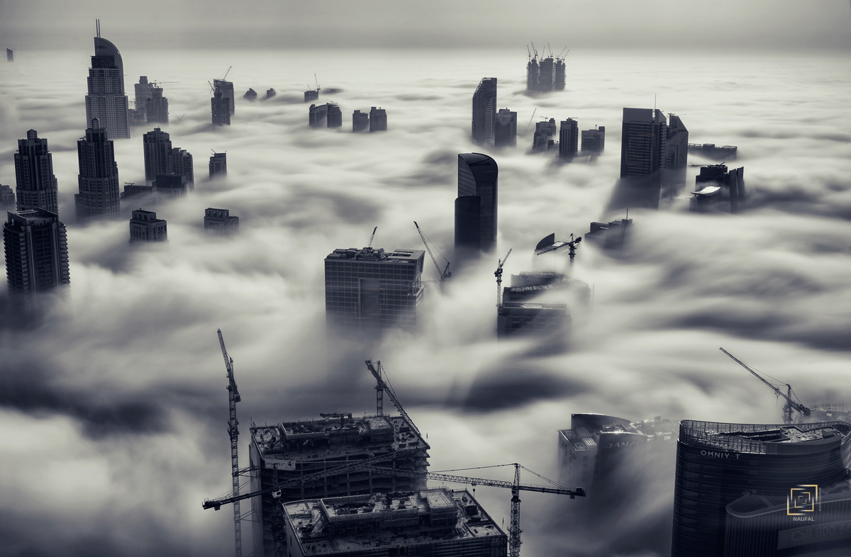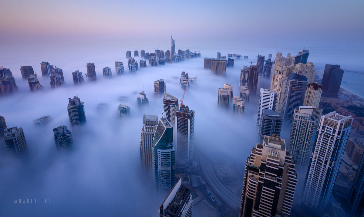 When Dubai is enveloped by the fog, no better place than rooftops of skyscrapers to witness the stunning view.